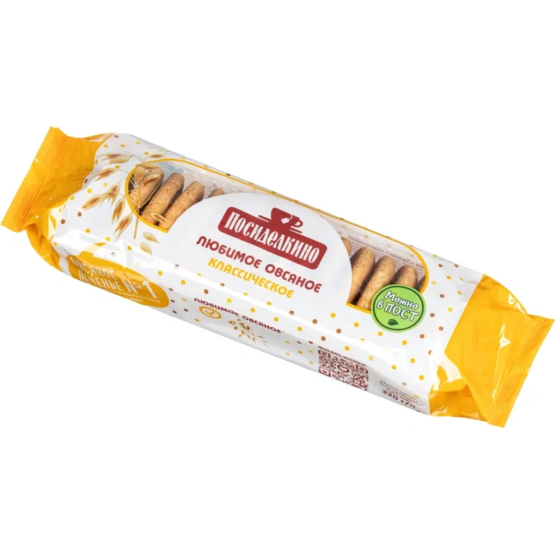 Овсяное печенье Посиделкино изготовлено по традиционному рецепту. Мягкое, но в то же время хрустящее печенье с едва уловимыми нотками корицы — беспроигрышный вариант для ежедневных чаепитий в любом коллективе. Будь то домашние уютные сборы за столом, офисные перерывы на чашку чая и кофе, утренники в саду или в школе, дачные посиделки и пикники — оно непременно подарит положительные эмоции и зарядит отличным настроением. Вкусное овсяное печенье отлично справится с чувством голода и поможет восстановить силы во время интенсивных трудовых и умственных нагрузок. Ароматная выпечка выручит при появлении неожиданных гостей, а также станет отличным поводом для тёплых встреч с друзьями и близкими.