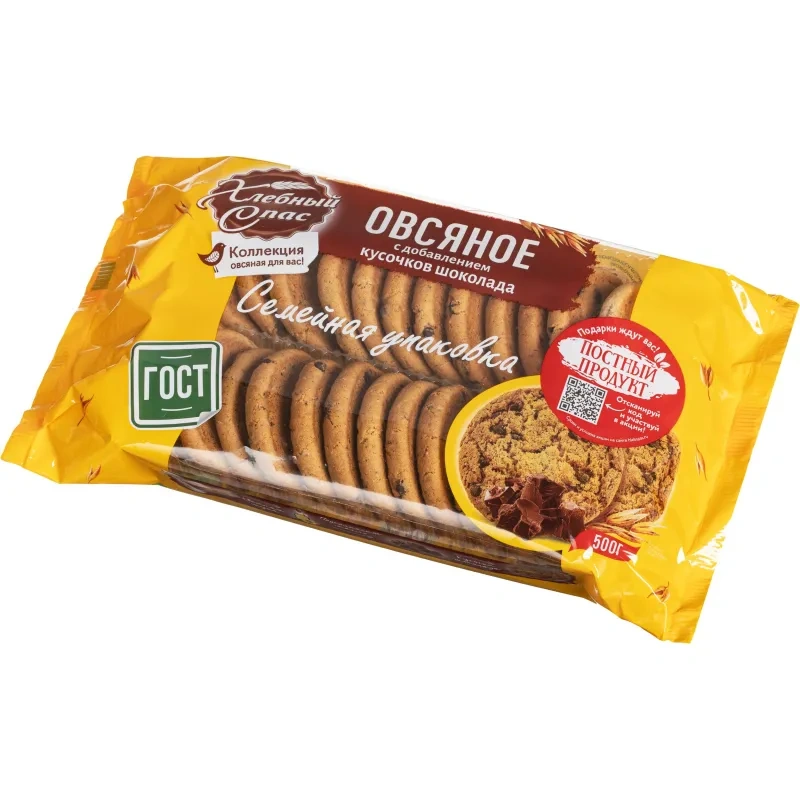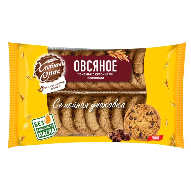 Печенье овсяное Хлебный спас с кусочками шоколада 500 г