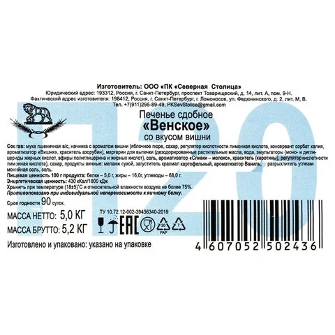 Печенье песочное Северная столица Венское с вишней 5 кг