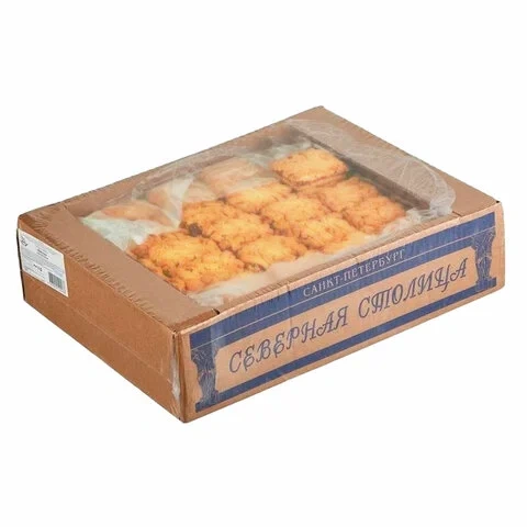 маргарин столовый (жир растительный гидрогенизированный рафинированный дезодорированный, масла подсолнечное и пальмовое рафинированные дезодорированные, вода питьевая, соль поваренная, эмульгатор — моноглицериды жирных кислот, эмульгатор лецитин соевый, природный краситель бета-каротин, ароматизаторы «сливочного масла» и «молока», консервант кислота сорбиновая, регулятор кислотности кислота молочная), сахар-песок, яичный меланж (сухой), загуститель крахмал, ароматизатор «Ванилин», разрыхлитель углеаммонийная соль, соль поваренная пищевая. Противопоказано при индивидуальной непереносимости к белку яйца.