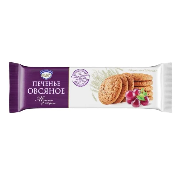 Классическое овсяное печенье с дополнительно добавленным крупным изюмом порадует вас своим ярким насыщенным вкусом и полезными свойствами. Ведь изюм является кладезем питательных веществ, витаминов и минералов и благотворно влияет на здоровье сердечно-сосудистой системы. Натуральный состав на Растительных маслах. Без красителей и консервантов.