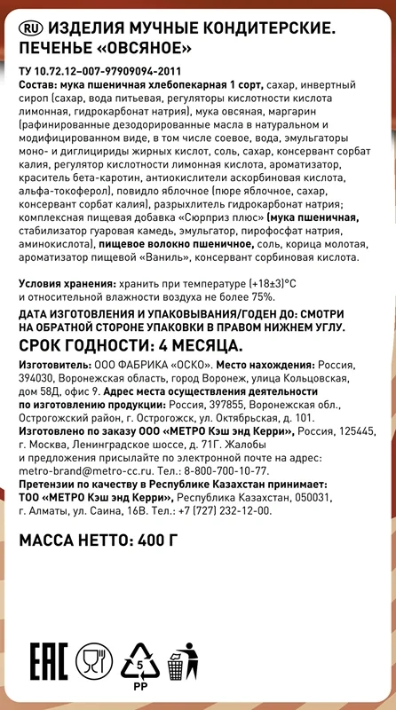 Fine Life Печенье овсяное, 400г