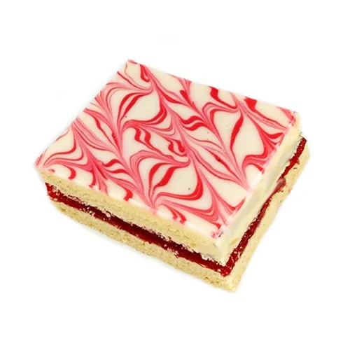 Двухслойное пирожное с прослойкой из брусники, покрытое глазурью.