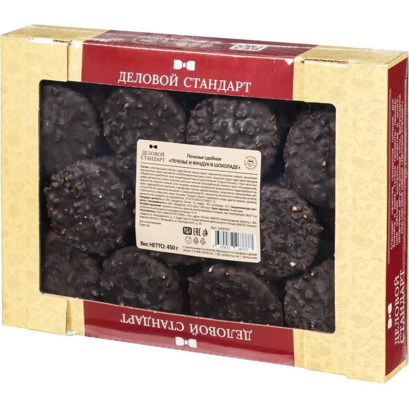 Печенье сдобное Деловой Стандарт Печенье и фундук в шоколаде, 450г