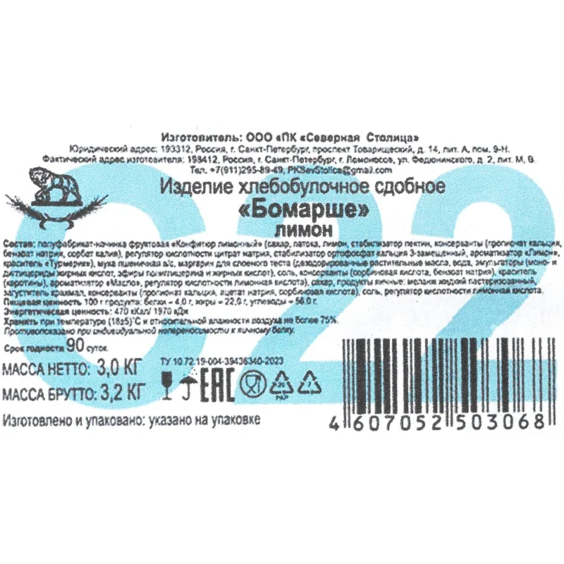 Печенье Северная столица Бомарше лимон, 3кг/уп