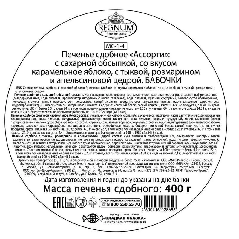 Печенье Сладкая Сказка Regnum Бабочки, ассорти, 400г