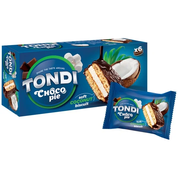 Великолепное трио из ароматного кокосового печенья, нежного маршмеллоу и глазури. Choco Pie дословно переводится как шоколадный пирожок, а на самом деле, – давно любимое многими пирожное, которое особенно гармонично сочетается с какао, кофе с молоком или любимым чаем. А когда захочется разнообразия, подогрейте Choco Pie 5-7 секунд в микроволновке. Начинка из маршмеллоу увеличится и станет еще более воздушной, пирожное – более пышным, а вкус натурального кокоса – раскроется и станет более соблазнительным. Теплое и будто свежеиспеченное лакомство, которое лучше есть ложкой, будет таять во рту.