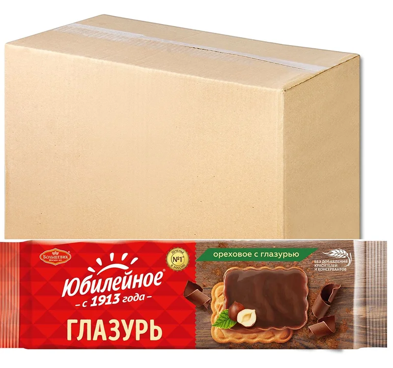 Печенье Юбилейное ореховое с темной глазурью, 116г x 60 шт