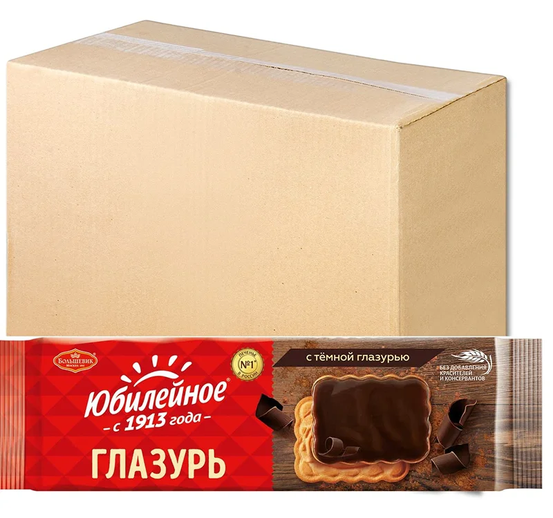 Юбилейное с темной глазурью — вкусное печенье с шоколадной глазурью, которое украсит стол на любом чаепитии и точно покорит сердца всех гостей. Традиционное хрустящее печенье с аппетитным ароматом и нежная, тающая во рту темная шоколадная глазурь — это сочетание просто создано для любителей сладкого. Сладости к чаю бренда Юбилейное радуют потребителей неизменным качеством уже более ста лет. Секрет кроется в особой рецептуре, проверенной временем. Для производства печенья к чаю используются только отборные ингредиенты, без красителей и консервантов. Также печенье Юбилейное содержит витаминно-минеральный комплекс. Идеальное сочетание высокого качества, превосходного вкуса и пользы! Печенье можно использовать для приготовления аппетитных домашних десертов: пирожное картошка или шоколадная колбаса. Печенье в шоколадной глазури станет отличным дополнением к чашке бодрящего кофе и подарит сладкий заряд на весь день. Любите наслаждаться вкусом Юбилейного, не отрываясь от дел? Возьмите печенье к кофе с собой на работу, чтобы вы могли в любой момент подкрепиться любимыми сладостями и поднять себе настроение!