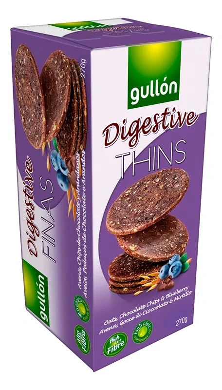 Печенье Gullon Digestive Thins с овсяными хлопьями, черникой и шоколадной стружкой, 270г