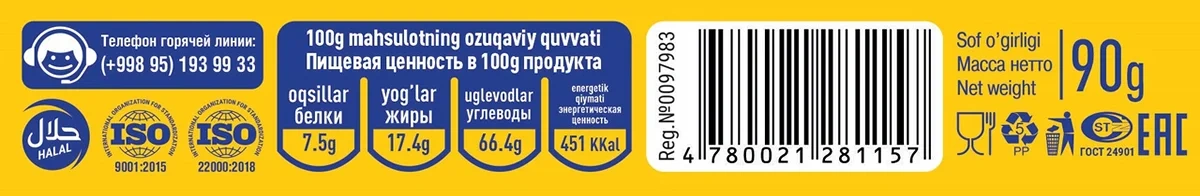 Печенье сахарное Bon Star Krember с шоколадной глазурью, 90г
