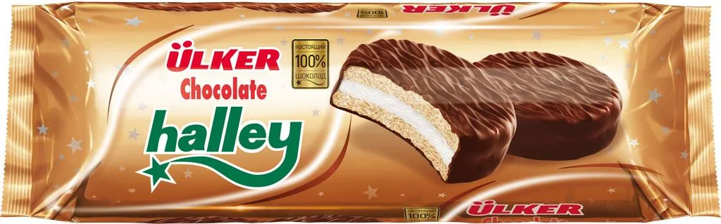 Печенье-сэндвич Ulker Halley с молочным шоколадом и маршмеллоу, 224г