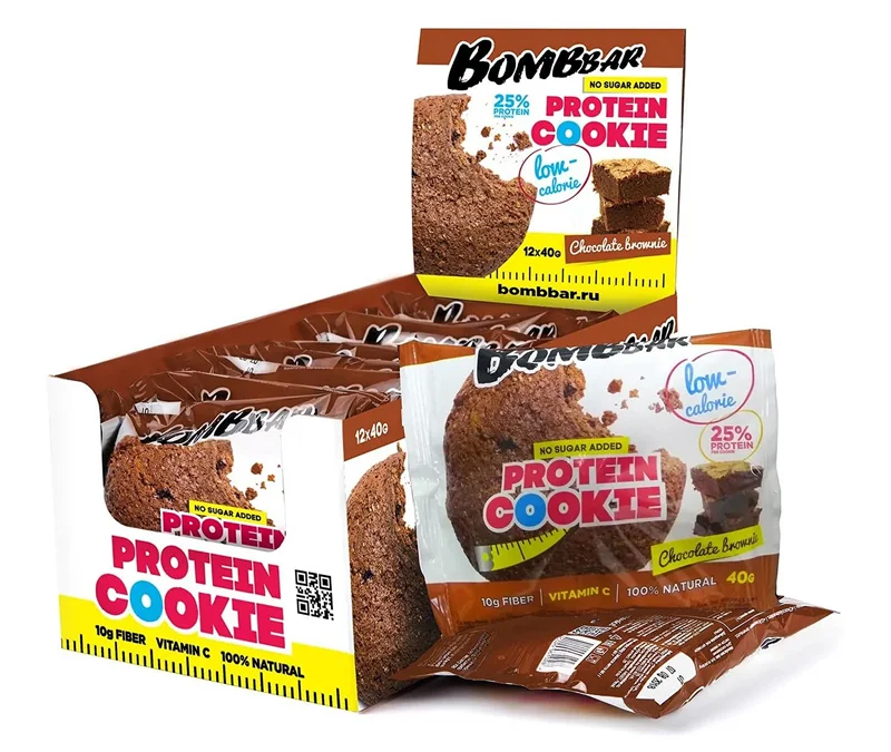 Печенье протеиновое Bombbar Брауни без сахара, 40г х 12 шт