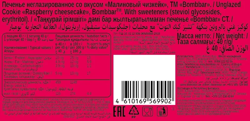Печенье Bombbar малиновый чизкейк, 40г