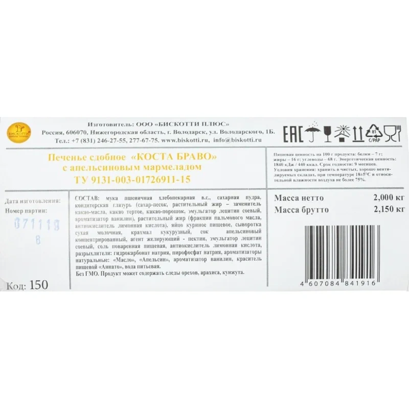 Печенье Бискотти Коста браво, с вишневым мармеладом, глазированное, 2 кг