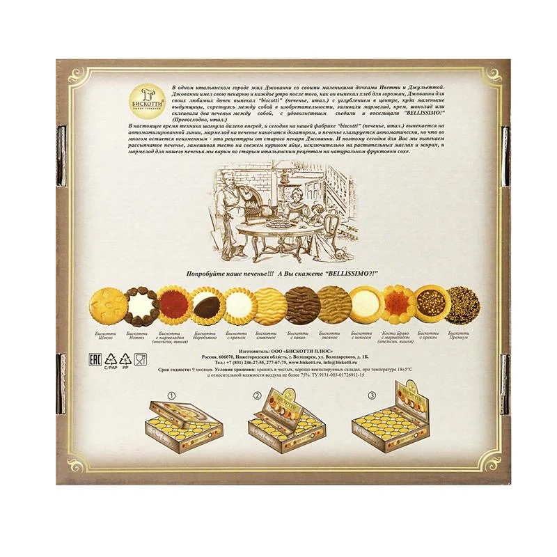 Печенье БИСКОТТИ (Россия) 'Творожное', сдобное, 1,8 кг, весовое, гофрокороб