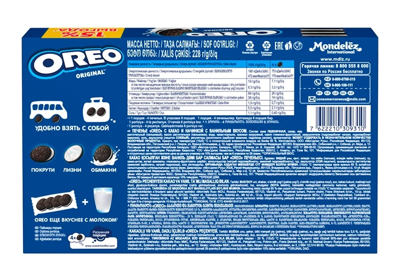 Печенье Oreo с ванильной начинкой, 228г