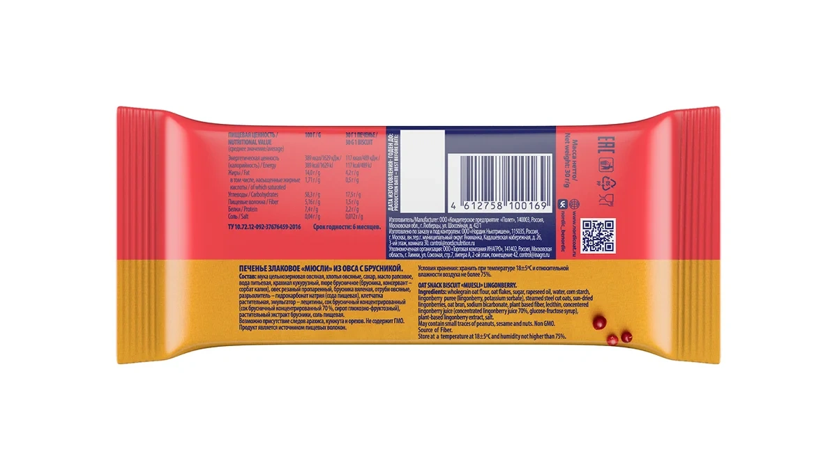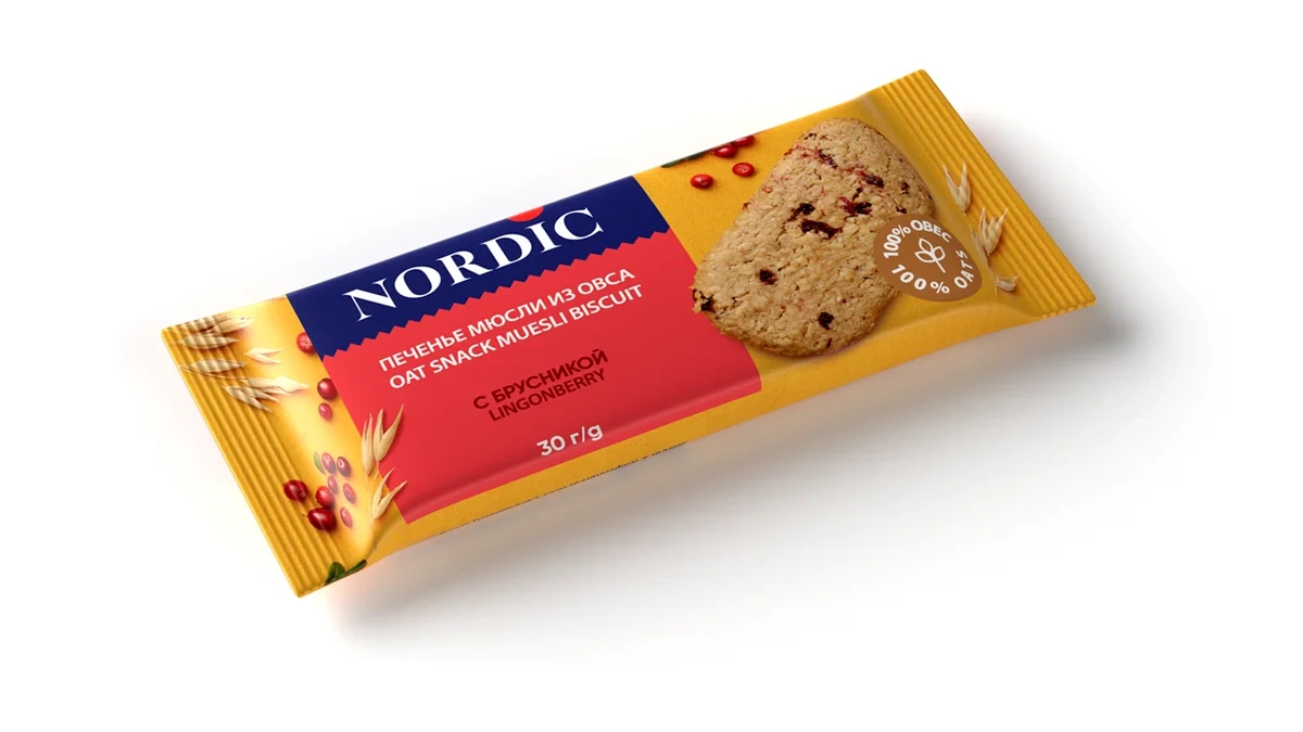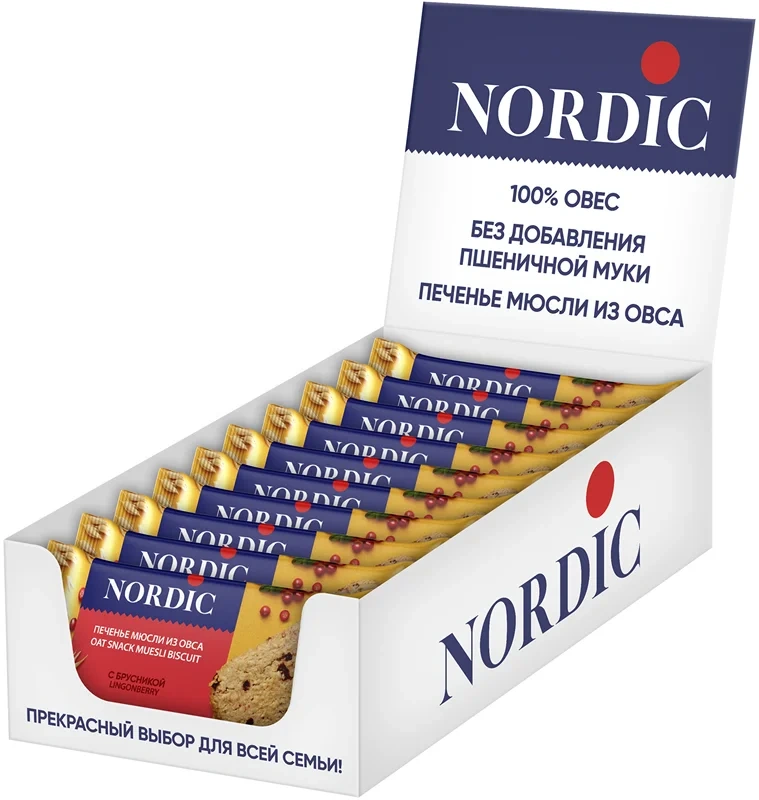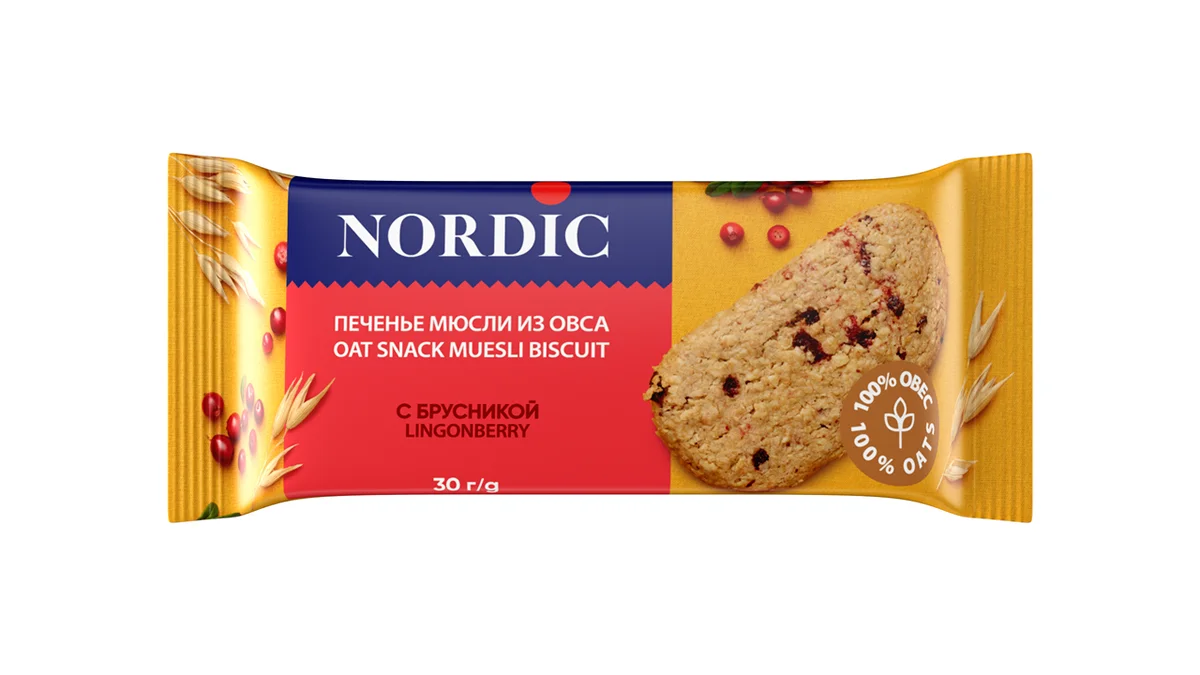 Печенье Nordic злаковое Мюсли из овса с брусникой, 30г