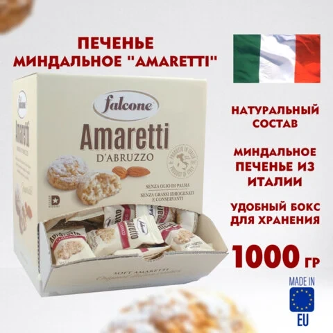 Печенье сдобное FALCONE 'Amaretti' мягкое classico, 1 кг (100 шт. по 10 г), в коробке Office-box, MC