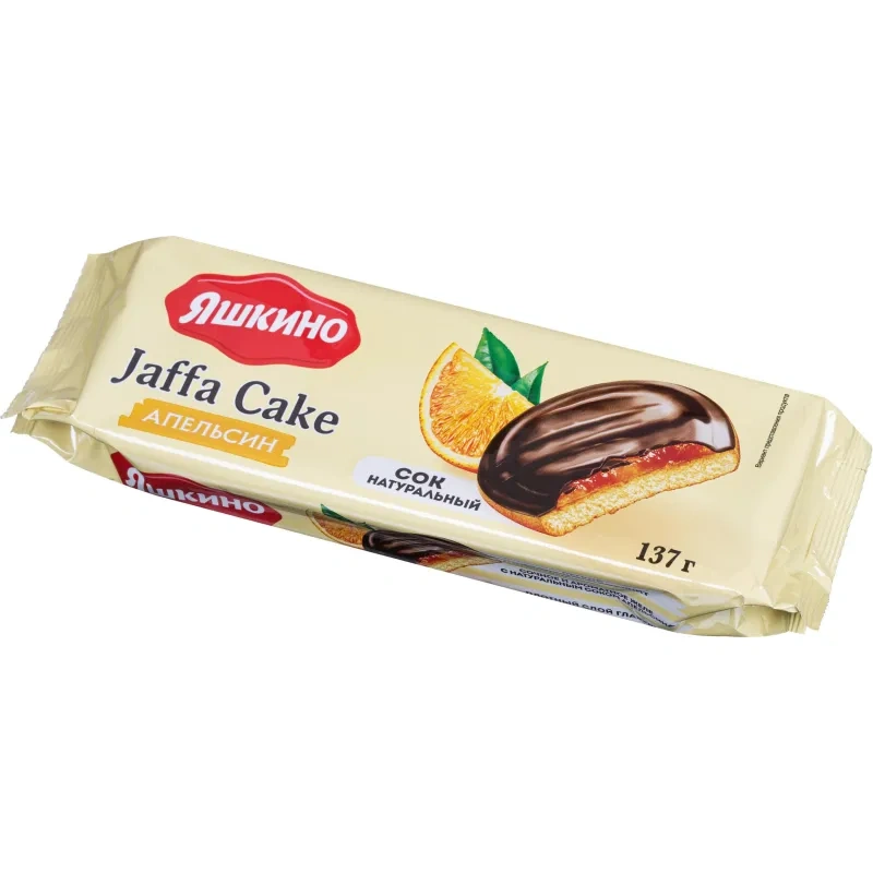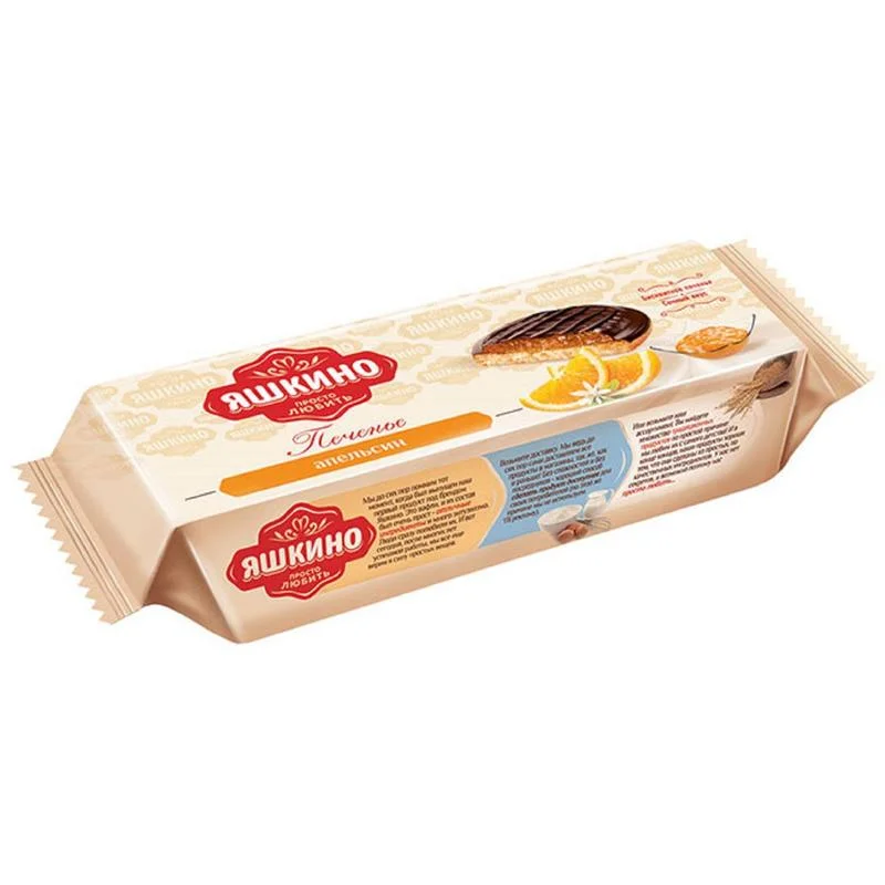 Печенье Яшкино Апельсин, с бисквитом, джемом и шоколадной глазурью, 137г