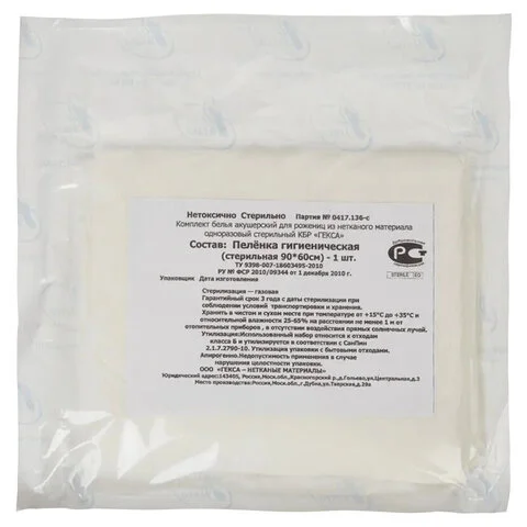 Пеленка стерильна, упакована в бумажно-полимерный блистер по 1 шт.