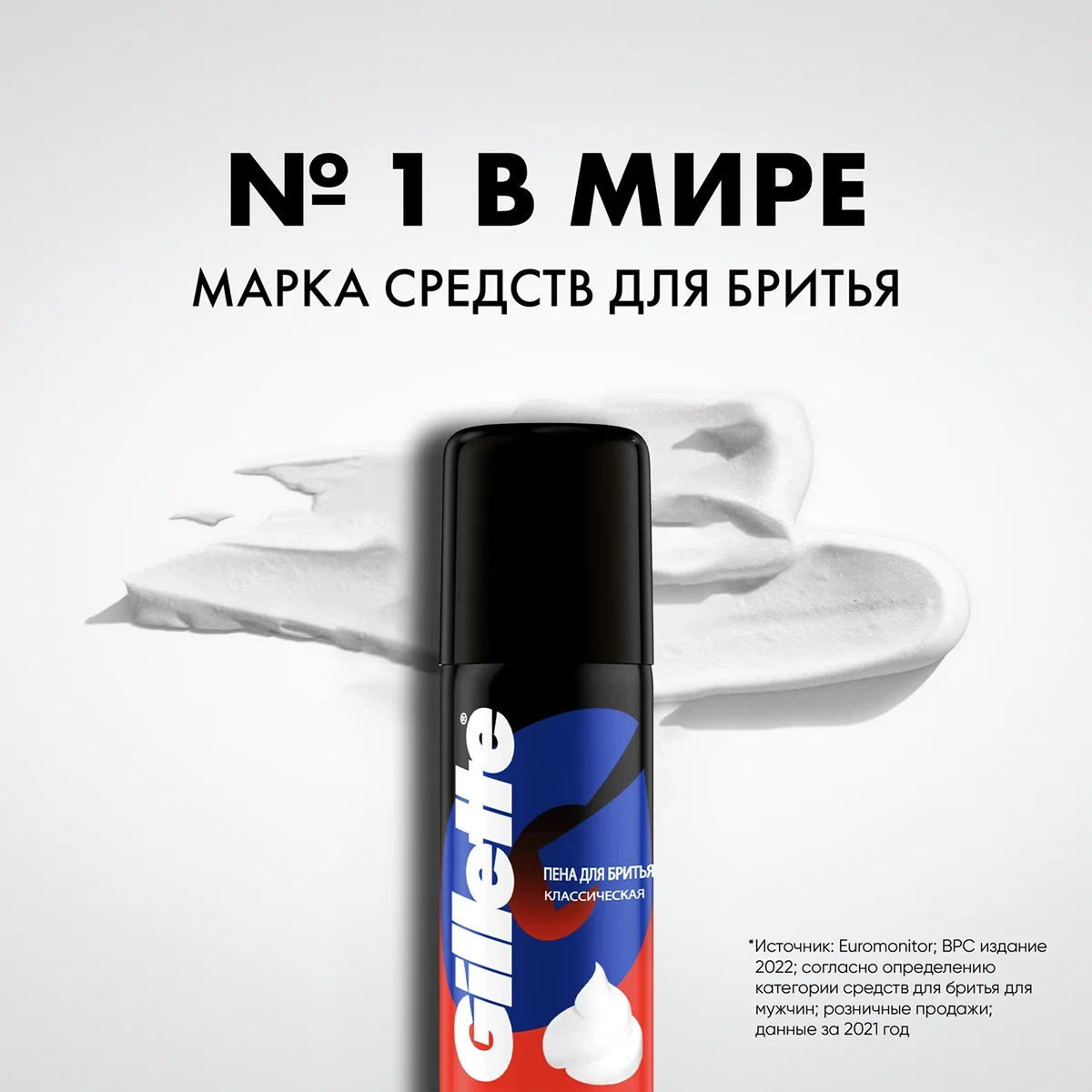 Классическая мужская пена для бритья Gillette Classic с оригинальным ароматом — это простое и быстрое бритье, обеспечивающее гладкость и защиту. Формула пены Gillette Classic помогает уменьшить раздражение после бритья, царапины, порезы, жжение и покалывание. Преимущества: - Классическая защита: Защищает кожу от раздражения после бритья, порезов, царапин и жжения благодаря классической формуле Gillette; - Быстро, просто и гладко: Формула Gillette Comfort Glide помогает бритве скользить по коже, обеспечивая быстрое и чистое бритье с минимальным трением и раздражением после бритья - Простое бритье: Пенистую текстуру Gillette легко вспенивать и смывать плавным движением, делая её идеальной для быстрого бритья - Удобный мини формат для путешествий. Мужская пена для бритья Gillette Classic с ароматом лайма сочетает в себе классическую защиту от Gillette со свежим ароматом лайма. Формула пены Classic помогает уменьшить раздражение после бритья, царапины, порезы и жжение, а также она дополнена нотками лайма. Насладитесь густой и мягкой пеной, придающей коже природную свежесть! Вот почему пеной для бритья Gillette Classic с удовольствием пользуется уже не одно поколение мужчин.