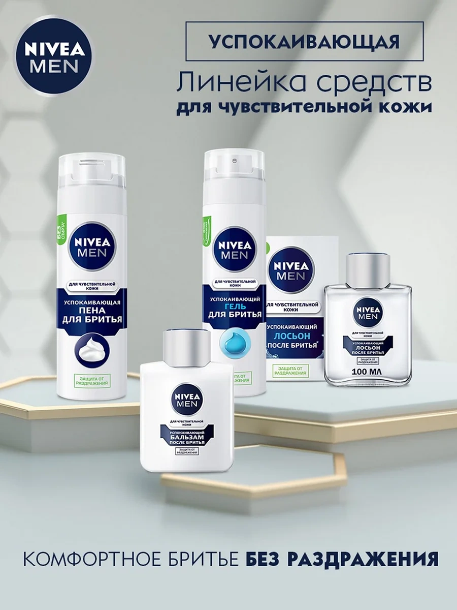 Уникальная серия средств для чувствительной кожи от Nivea Men разработана специально для мужчин, чья кожа склонна к раздражению. Не содержит спирта. Благодаря натуральной ромашке продукты серии для чувствительной кожи успокаивают и защищают Вашу кожу во время и после бритья.