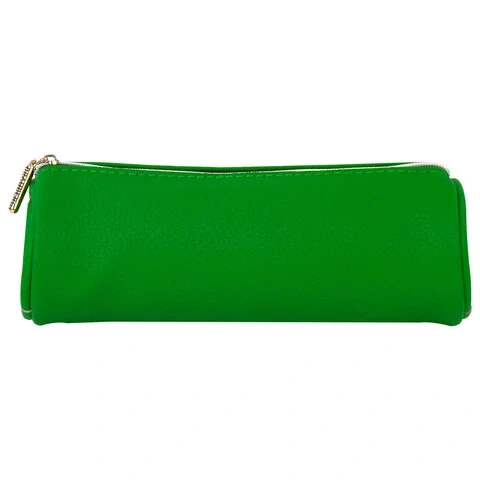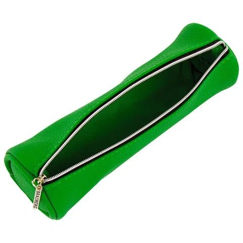 Изготовлен из искусственной фактурной кожи ярких цветов. Пенал-косметичка округлой формы с тканевой подкладкой. Предназначен для девочек. Вместительное отделение без наполнения для канцелярских принадлежностей застегивается на молнию. Размер - 20х6х6 см. Поставляется в нескольких вариантах цвета (без возможности выбора). В дисплее - 12 шт.