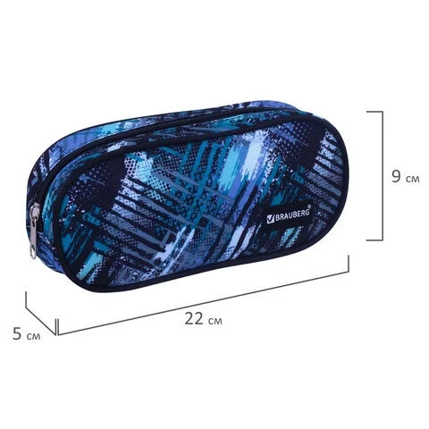 Пенал-косметичка BRAUBERG овальный, полиэстер, 'Lines', 22х9х5 см, 229273