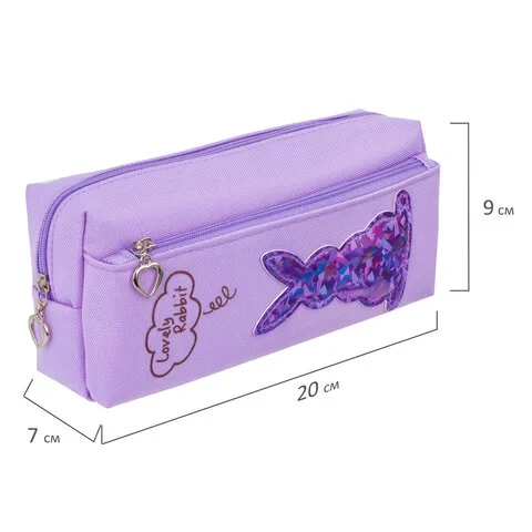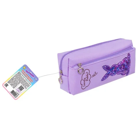 Пенал-косметичка ЮНЛАНДИЯ, 2 отделения, мягкий, 'Зайка', фиолетовый, 20х7х9 см, 228989