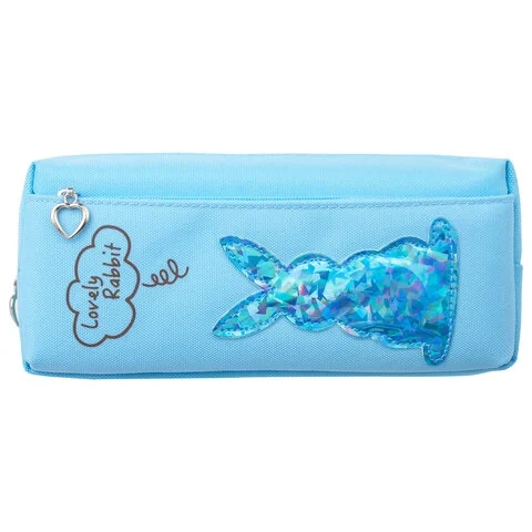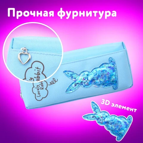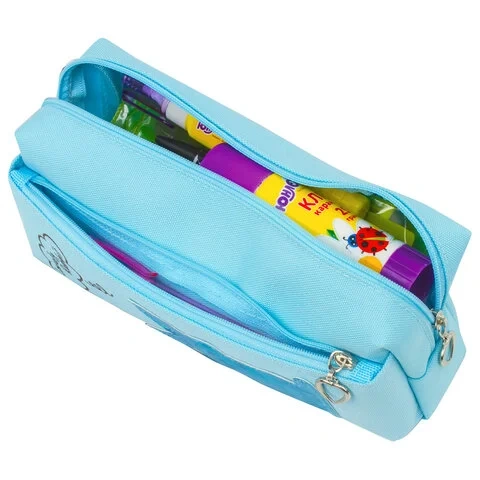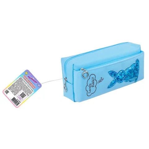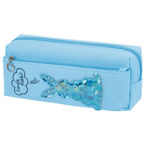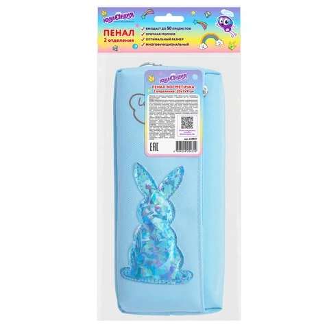 Пенал-косметичка ЮНЛАНДИЯ, 2 отделения, мягкий, 'Зайка', голубой, 20х7х9 см, 228987
