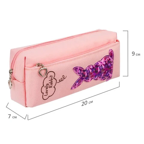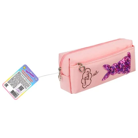 Пенал-косметичка ЮНЛАНДИЯ, 2 отделения, мягкий, 'Зайка', розовый, 20х7х9 см, 228988
