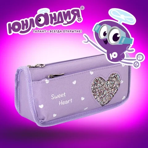 Пенал-косметичка ЮНЛАНДИЯ, 2 отделения, полиэстер, 'Heart', фиолетовый, 21х6х9 см, 270259