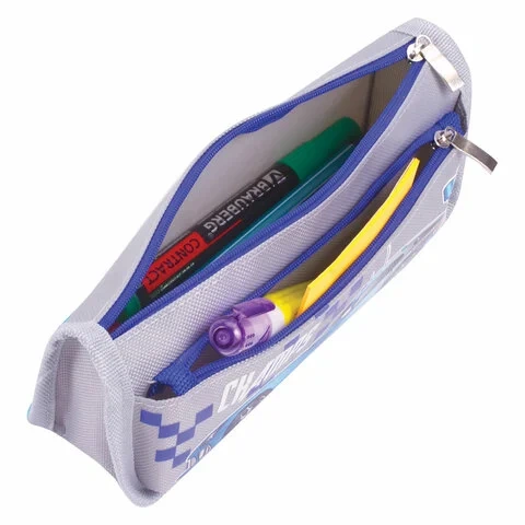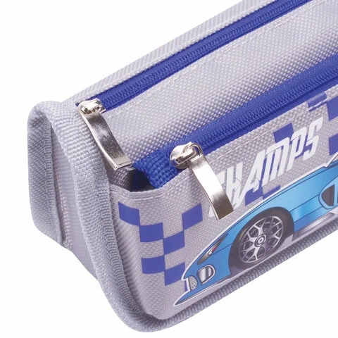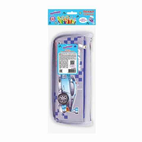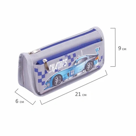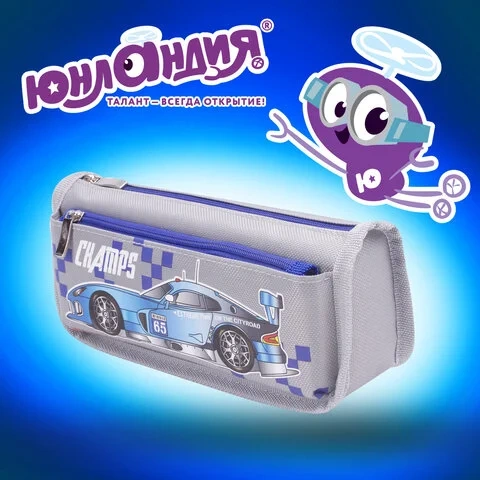 Пенал ЮНЛАНДИЯ для мальчиков, 2 отделения, мягкий, 'Машина', серый, 21х6х9 см, 228983
