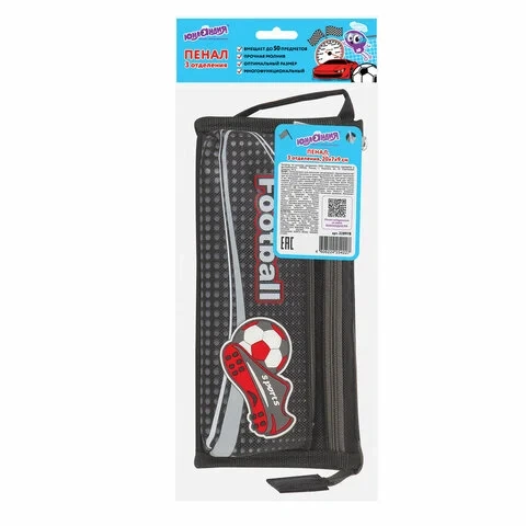 Пенал ЮНЛАНДИЯ для мальчиков, 3 отделения, мягкий, 'Футбол', черный, 20х7х9 см, 228978 446 446 за шт.