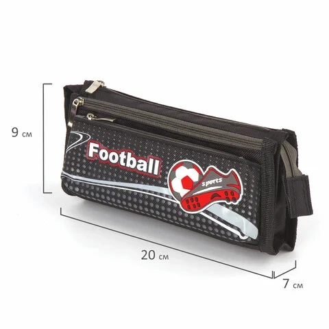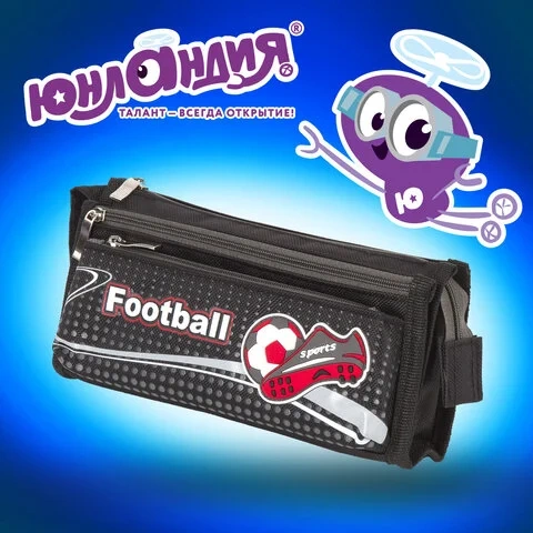 Пенал ЮНЛАНДИЯ для мальчиков, 3 отделения, мягкий, 'Футбол', черный, 20х7х9 см, 228978