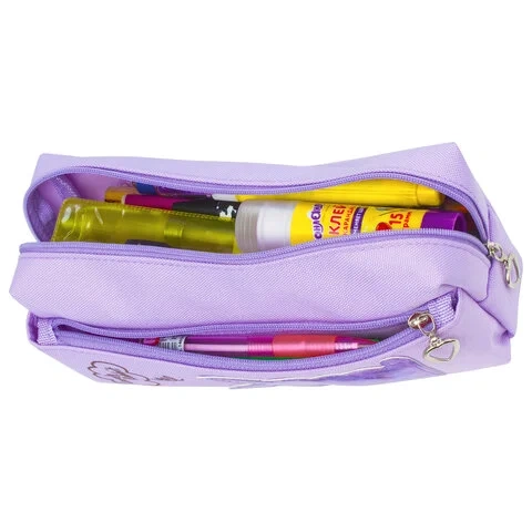 Пенал-косметичка ЮНЛАНДИЯ, 2 отделения, мягкий, 'Зайка', фиолетовый, 20х7х9 см, 228989
