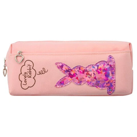 Пенал-косметичка ЮНЛАНДИЯ, 2 отделения, мягкий, 'Зайка', розовый, 20х7х9 см, 228988