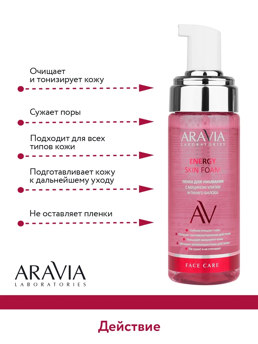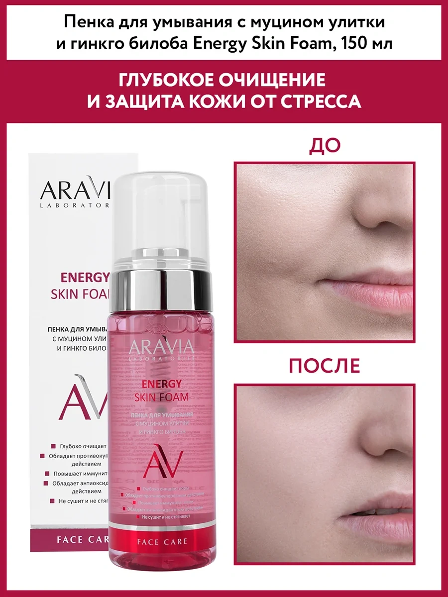 Пенка для умывания Aravia Energy Skin Foa с муцином улитки и гинкго билоба, 150мл