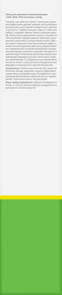 Пенка для умывания Consly отшелушивающая с AHA, BHA, PHA кислотами, 120мл