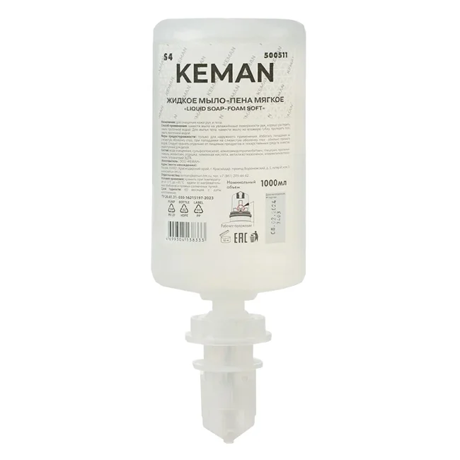 Пенное мыло в картридже Keman Liguid Soap Foam Soft S4, 1л