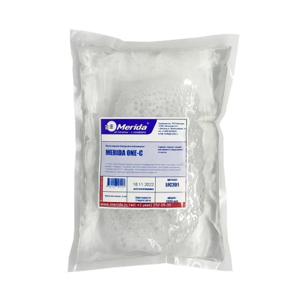 Пенящееся жидкое мыло MERIDA ONE-C содержит глицерин, благодаря чему придает коже мягкость.