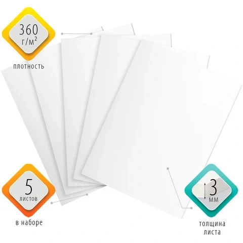 Пенокартон матовый, 50х70 см, толщина 3 мм, белый, КОМПЛЕКТ 5 листов, BRAUBERG, 112470