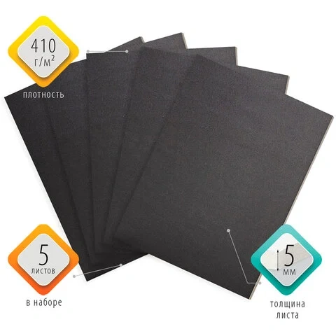 Пенокартон матовый, 50х70 см, толщина 5 мм, черный, КОМПЛЕКТ 5 листов, BRAUBERG, 112472