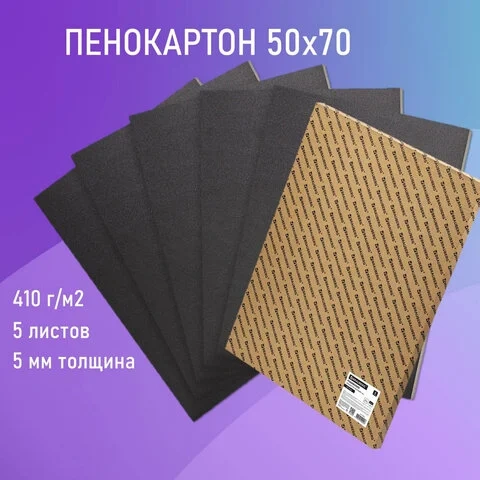Черный пенокартон форматом 50х70 см толщиной 5 мм поставляется комплектом 5 листов, упакованных в гофрокороб с печатью.