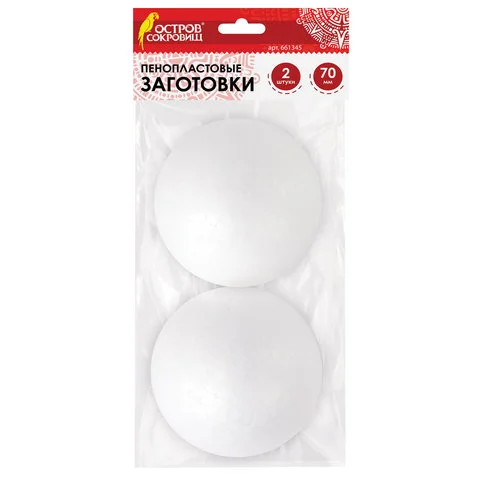Пенопластовые заготовки для творчества 'Шарики', 2 шт., 70 мм, ОСТРОВ СОКРОВИЩ, 661345