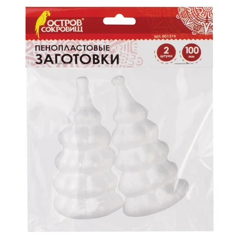 Пенопластовые заготовки для творчества 'Ёлочки', 2 шт., 100 мм, ОСТРОВ СОКРОВИЩ, 661374