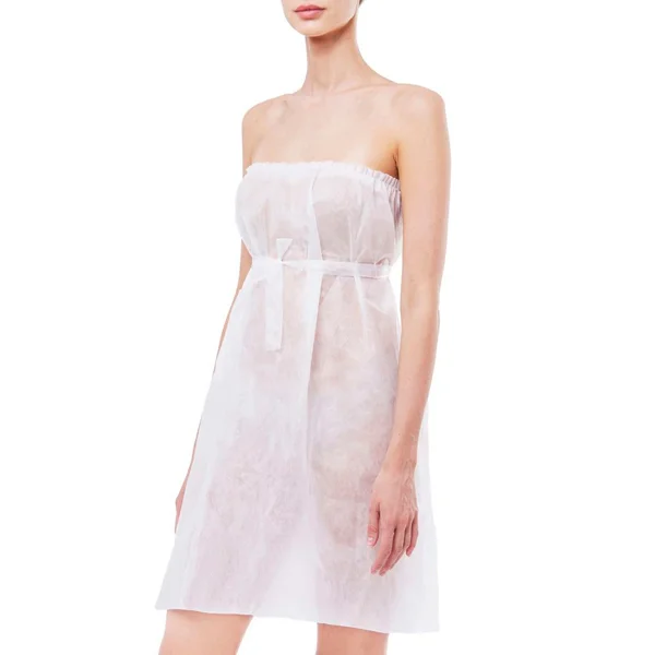 Одноразовый пеньюар предназначен для защиты тела и нижнего белья клиента от попадания косметических средств во время процедур по уходу за кожей и сеансов в СПА.
