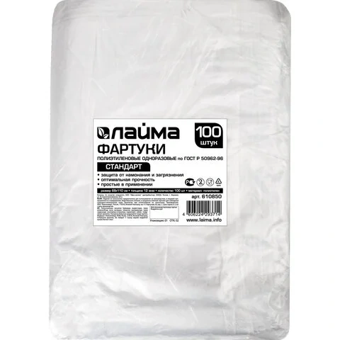 Одноразовый фартук Laima Стандарт 68x110см, полиэтилен, 100шт/уп