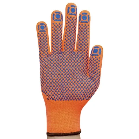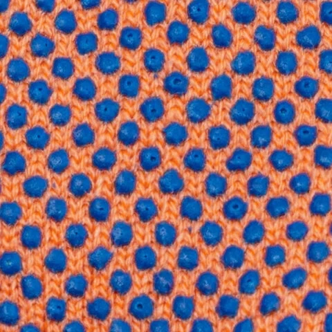Цвет основы – оранжевый/серый, ПВХ-нанесение – точки синего цвета, 10 класс вязки.